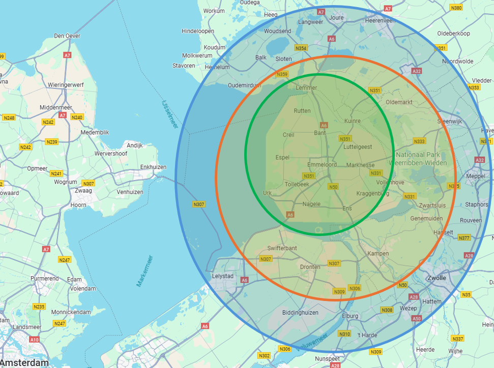 - Transportkosten vanaf Espel berekend: € 0,50 p/km